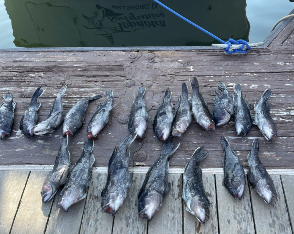 Black sea bass are another favorite on our trips. These guys are structure lovers, hanging around reefs, wrecks, and rocky bottoms. They might not be the biggest fish in the sea, but what they lack in size they make up for in numbers and taste. Sea bass are aggressive feeders and put up a scrappy fight on light tackle. You can find them year-round, but the biggest ones usually show up in the cooler months. Catching your limit of these tasty critters is always a good day in my book.